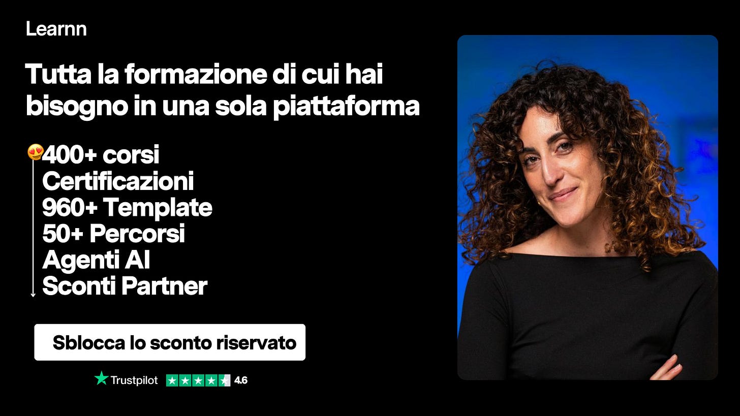 Conosci Learnn? Ă la piattaforma italiana progettata per offrire in un unico piano oltre 400 corsi brevi e modulari, template e agenti IA che ti aiutano in un percorso formativo che si adatta alle tue esigenze.